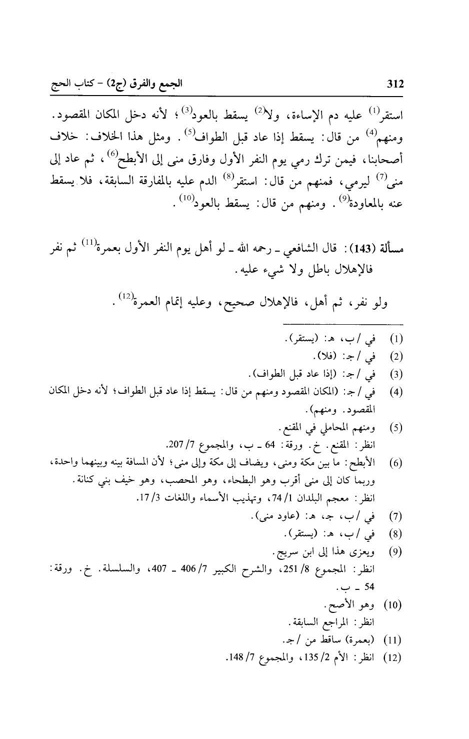 استقر عليه دم الإساءة، ولا يسقط بالعود؛ لأنه دخل المكان المقصود ومنهم من قال: يسقط بالعود؛ لأنه دخل المكان المقصود. ومنهم من قال: يسقط إذا عاد قيل الطواف. ومثل هذا الخلاف: خلاف أصحابنا، فمن ترك رمي يوم النفر الأول وفارق مني إلي الأبطح، ثم عاد إلي مني ليرمي، فمنهم من قال: استقر الدم عليه بالمفارقة السابقة، فلا يسقط عنه بالمعاودة. ومنهم من قال: يسقط بالعود.
