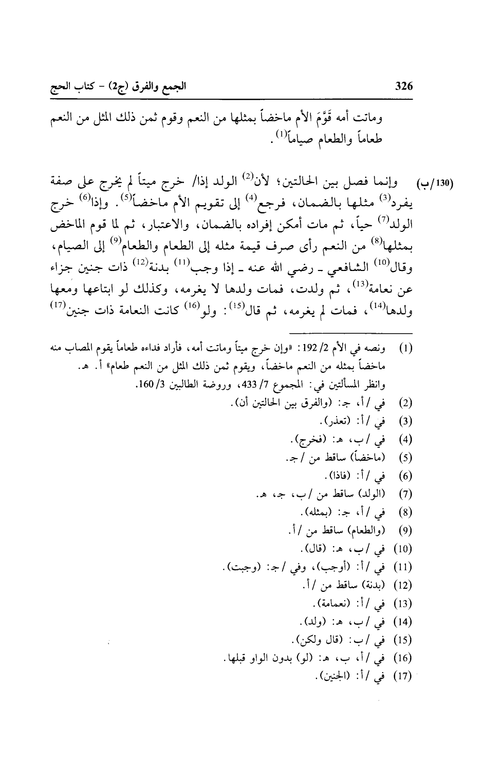 وماتت أمه قوم مخاضا بمثلها من النعم وقوم ثمن ذلك المثل من النعم طعاماً والطعام صياماً.