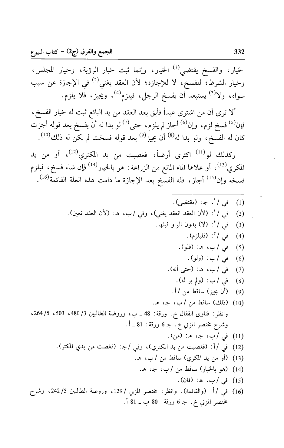 الخيار، والفسخ يقتضي الخيار، وإنما ثبت خيار الرؤية، وخيار المجلس، وخيار الشرط؛ للفسخ، لا للإجازة؛ لأن العقد يغني في الإجازة عن سبب سواه، ولا يستبعد أن يفسخ الرجل، فيلزم، ويجيز، فلا يلزم.