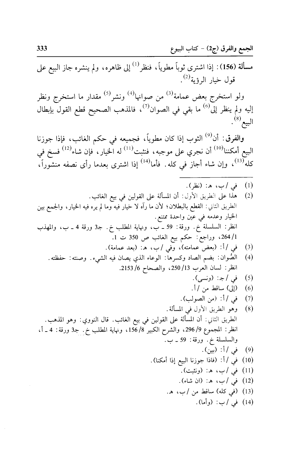 مسألة (١٥٦): إذا اشتري ثوباً مطوياً، فنظر إلي ظاهره، ولم ينشره جاز البيع علي قول خيار الرؤية.