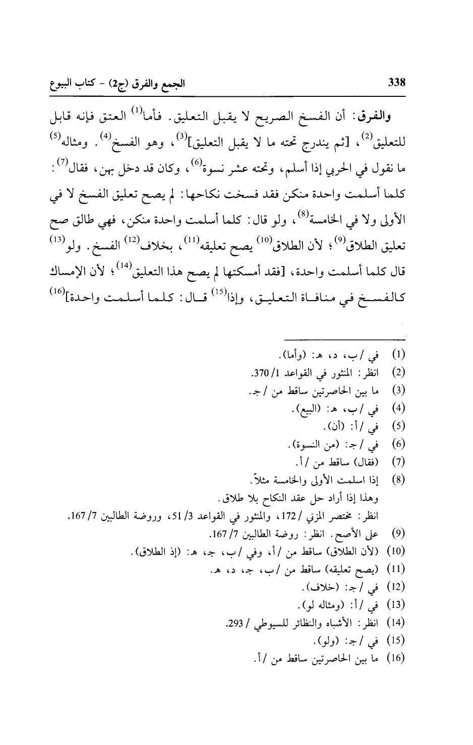 والفرق: أن العتق الفسخ الصريح لا يقبل التعليق. فأما العتق فإنه قابل للتعليق، [ثم يندرج تحته مالا يقبل التعليق]، وهو الفسخ. ومثاله ما نقول في الحربي إذا أسلم، وتحته عشر نسوة، وكان قد دخل بهن، فقال: كلمنا أسلمت ولا في الخامسة، ولو قال: قاما أسلمت واحدة منكن، فهي طالق صح تعليق الصلاة؛ لأن الطلاق يصح تعليقه، بخلاف الفسخ. ولو قال كلما أسلمت واحدة، [فقد أمسكتا لم يصح هذا التعليق؛ لأن الإمساك كالفسخ في منافاة التعليق، وإذا قال: كلما أسلمت واحدة]