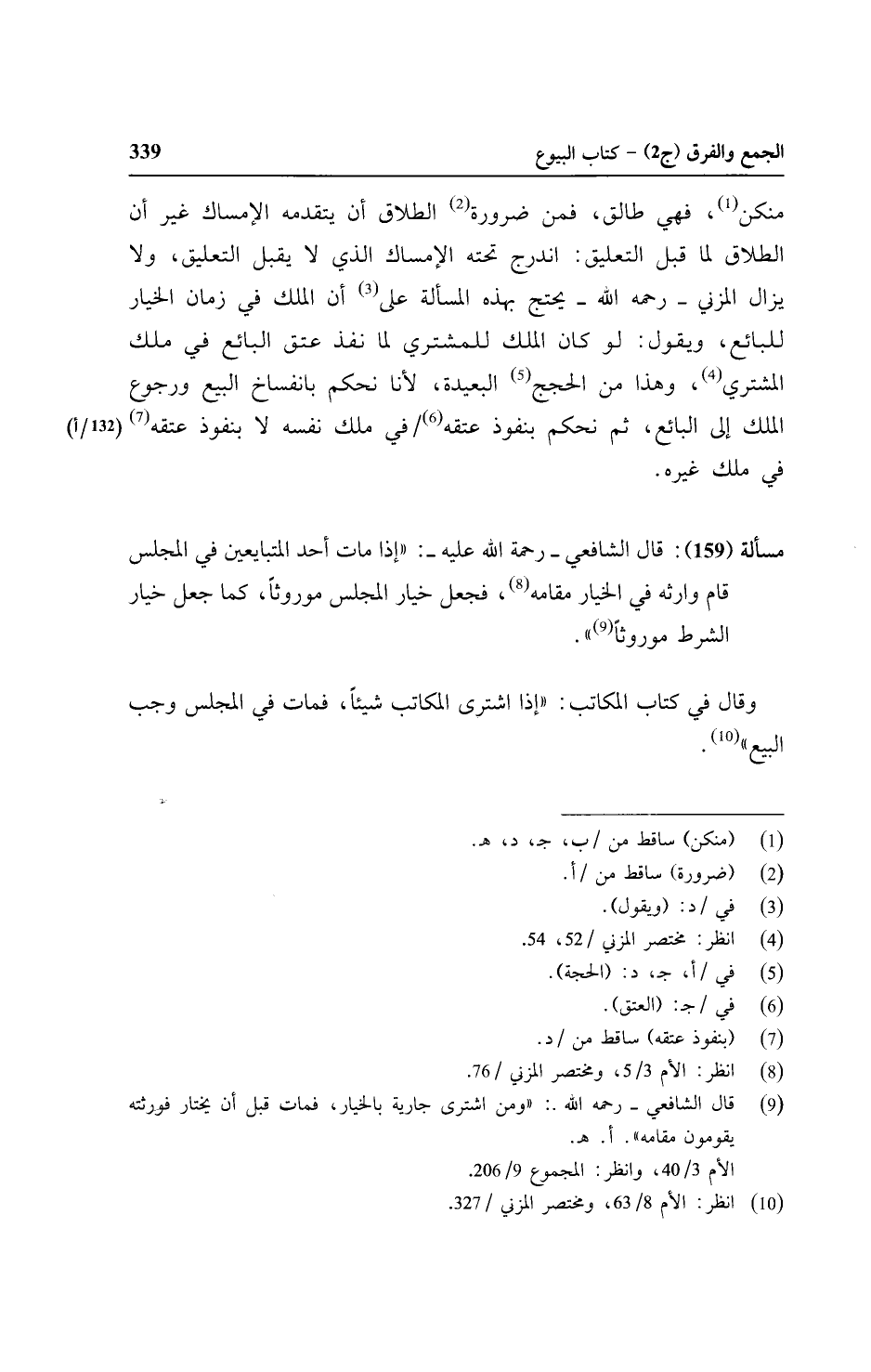مسألة (١٥٩): قال الشافعي -رحمه الله عليه -: ((إذا مات أحد المتبايعين في المجلس قام وارثه في الخيار مقامه، فجعل خيار المجلس موروثاً، كما جعل خيار الشرط موروثاً)).