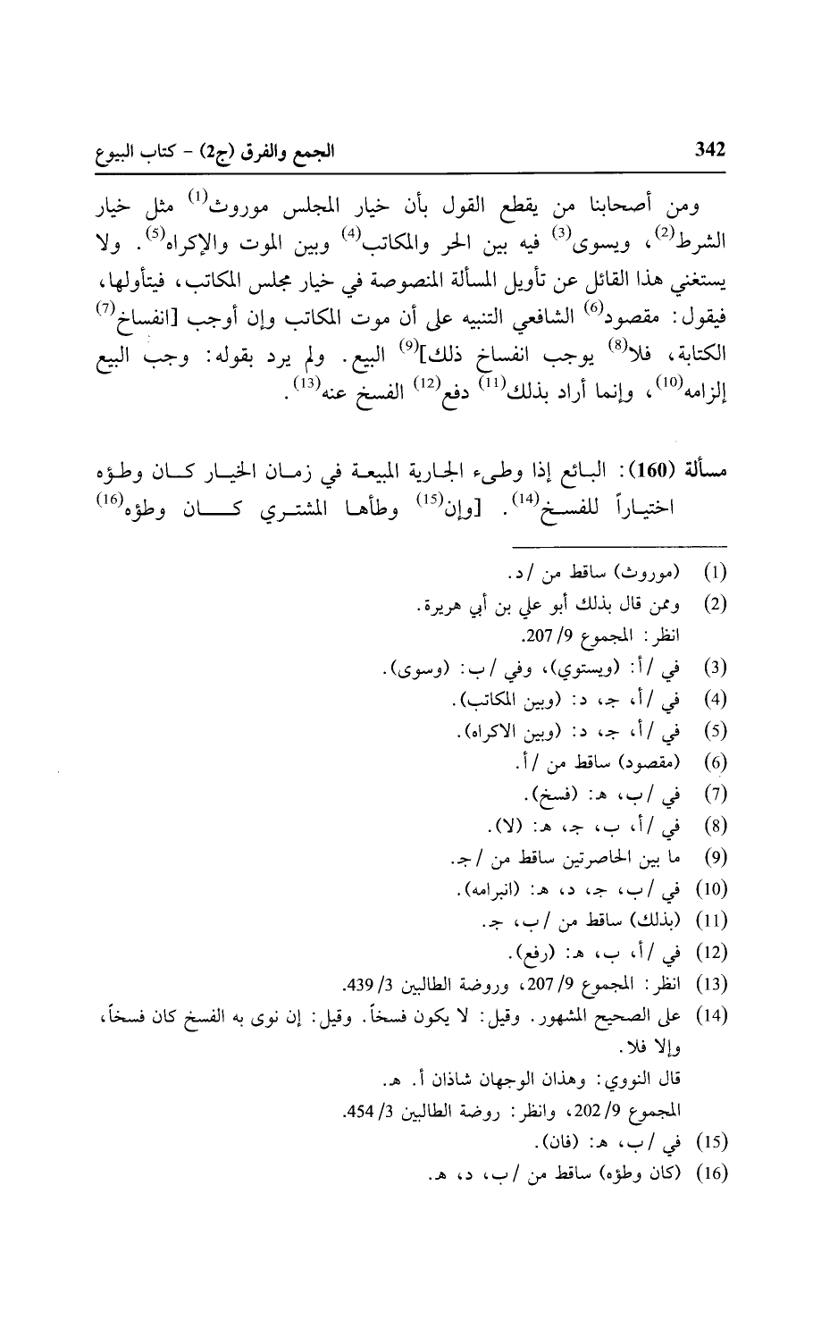 ومن أصحابنا من يقطع القول بأن خيار المجلس موروث مثل خيار الشرط، ويسوى فيه بين الحر والمكاتب وبين الموت والإكراه. ولا يستغني هذا القائل عن تأويل المسألة المنصوصة في خيار مجلس المكاتب، فيتأولها، فيقول: مقصود الشافعي التنبيه على أن موت المكاتب وإن أوجب [انفساخ ألكتابه، فلا يوجب انفساخ ذلك] البيع. ولم يرد بقوله: وجب البيع إلزامه، وإنما أراد دفع الفسخ عنه.