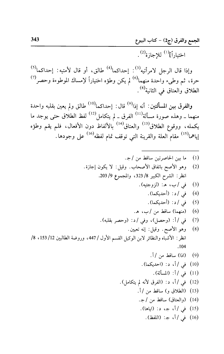والفرق بين المسألتين: أنه إذا قال: إحداكما طالق ولم يعين بقلبه واحدة منهما - وهذه صورة مسألة الفرق - لم يتكامل لفظ الطلاق حتى يوجد ما يكلمه، ووقوع الطلاق والعتاق بالألفاظ دون الأفعال، فلم يقم وطؤه إياهما مقام العلة والقرينة التي توقف تمام لفظه على وجودها.