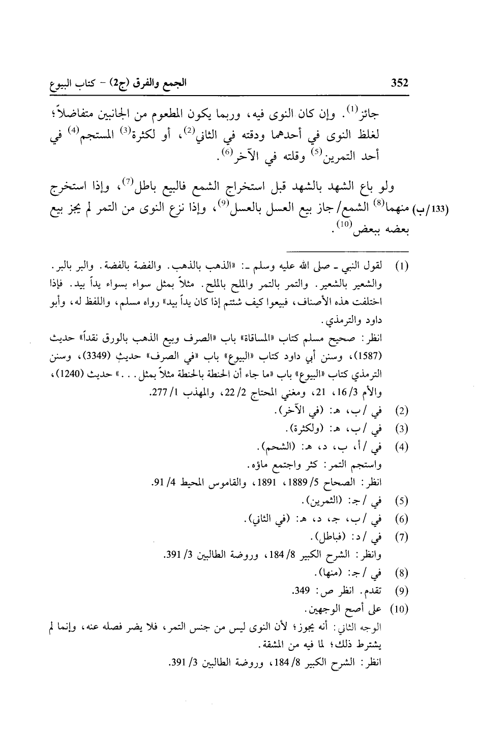 جائز. وإن كان النوى فيه. وربما يكون المطعوم من الجنبين متفاضلاً؛ لغلظ النوى في أحدهما ودقته في الثاني، أو لكثرة المستجم في أحد التمرين وقلته في الآخر.