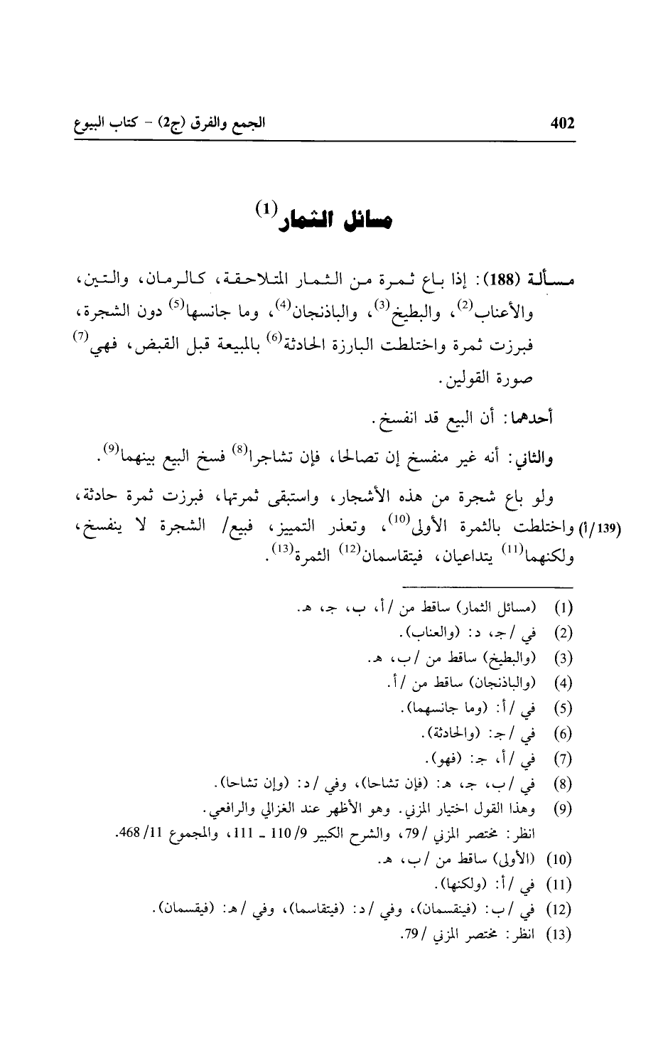 مسألة (١٨٨): إذا باع ثمرة من الثمرة المتلاحقة، كالرمان، والتين، والأعناب، والبطيخ، والباذنجان، وما جانسها دون الشجرة، فبرزت ثمرة واختلطت البارزة الحادثة بالمبيعة قبل القبض، فهي صورة القولين.
