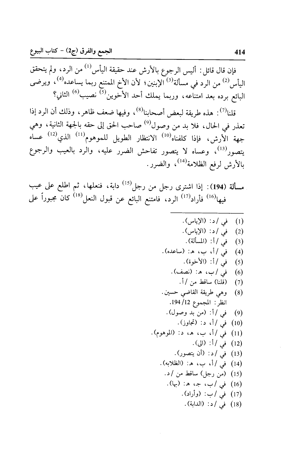 مسألة (١٩٤): إذا اشترى رجل من رجل دابة, فنعلها, ثم اطلع على عيب فيها فأراد الرد, فامتنع البائع عن قبول النعل كان مجبورًا على