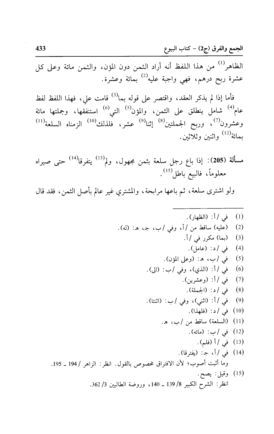 مسألة (٢٠٥): إذا باع رجل سلعة بثمن مجهول, ولم يتفرقا حتى صيراه معلومًا, فالبيع باطل.
