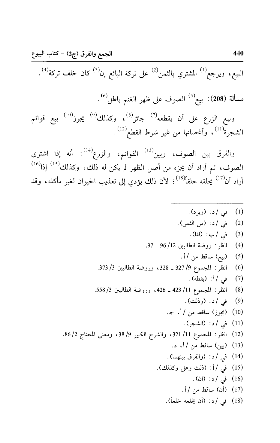 مسألة (٢٠٨): بيع الصوف على ظهر الغنم باطل.