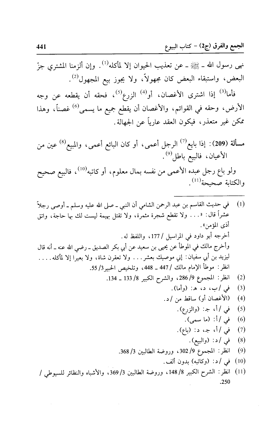 مسألة (٢٠٩): إذا بايع الرجل أعمى، أو كان البائع أعمى، والمبيع عين من الأعيان، فالبيع باطل.