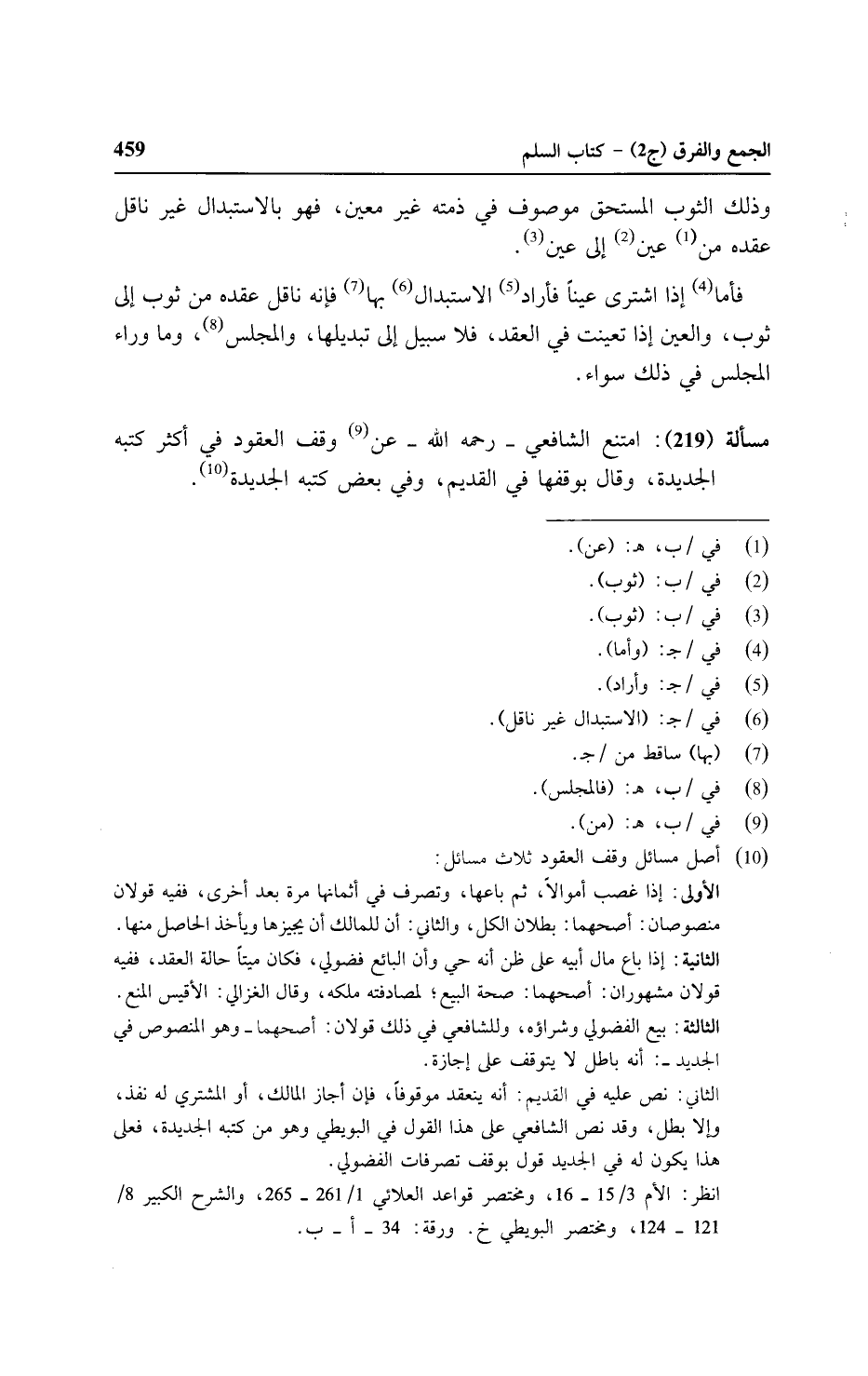 مسألة (٢١٩): امتنع الشافعي - رحمه الله - عن وقف العقود في أكثر كتبه الجديدة، وقال بوقفها في القديم، وفي بعض كتبه الجديدة.