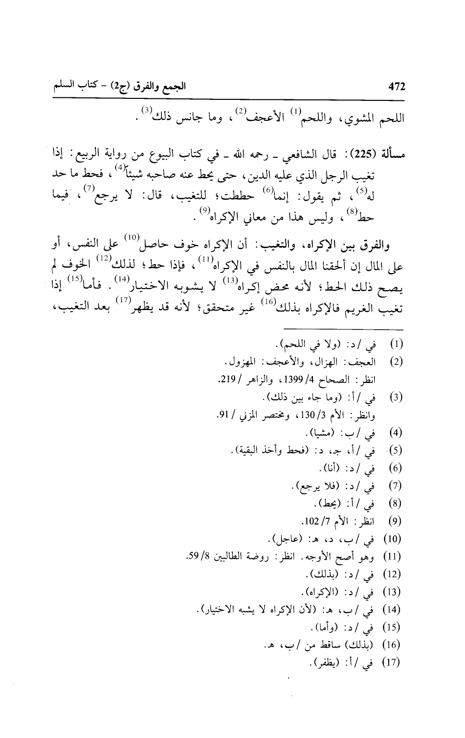 مسألة (٢٢٥): قال الشافعي - رحمه الله - في كتاب البيوع من رواية الربيع، إذا تغيب الرجل الذي عليه الدين، حتى يحط عنه صاحبه شيئًا، فحط ما حد له، ثم يقول: إنما حططت؛ للتغيب، قال: لا يرجع، فيما حط، وليس هذا من معاني الإكراه.