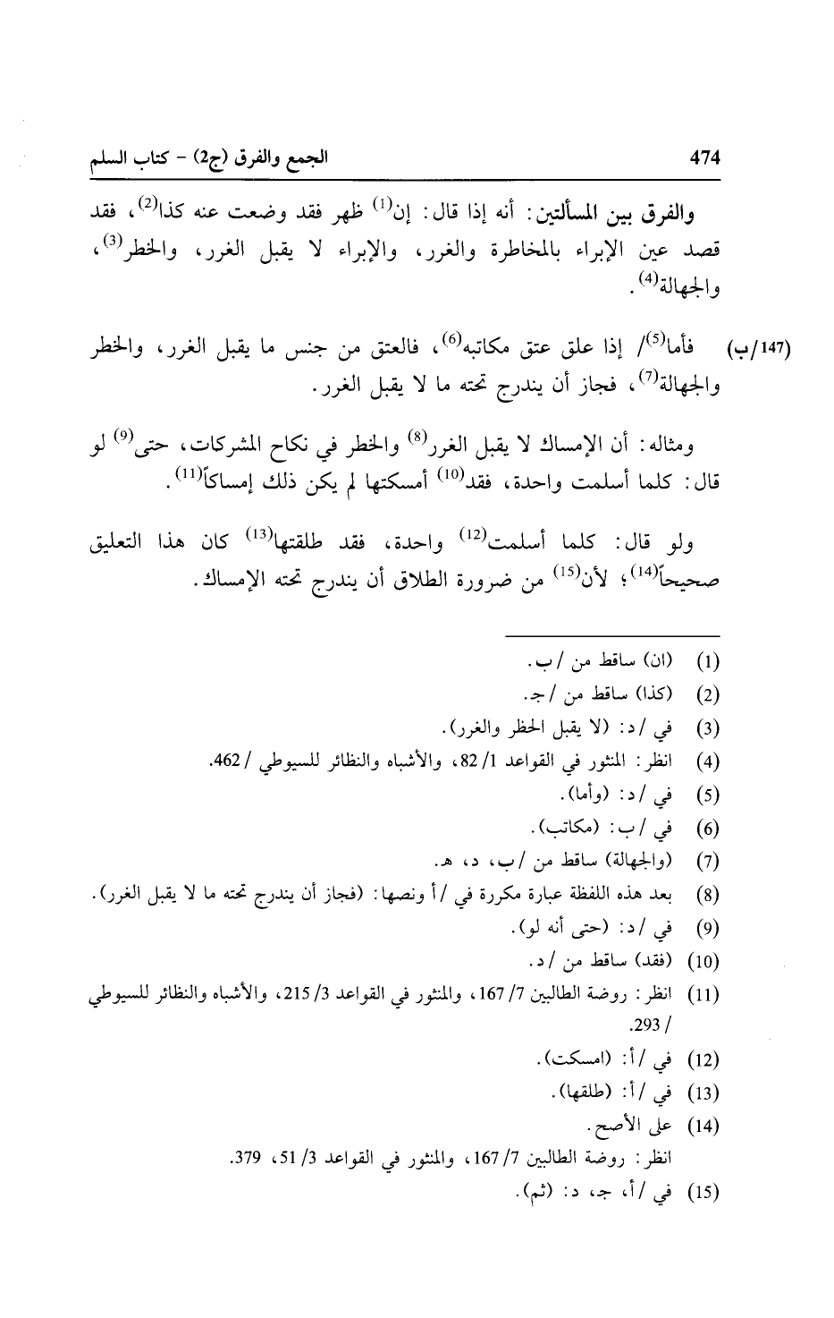 ومثاله: أن الإمساك لا يقبل الغرر والخطر في نكاح المشركات، حتى لو قال: كلما أسلمت واحدة، فقد أمسكتها لم يكن ذلك إمساكًا.
