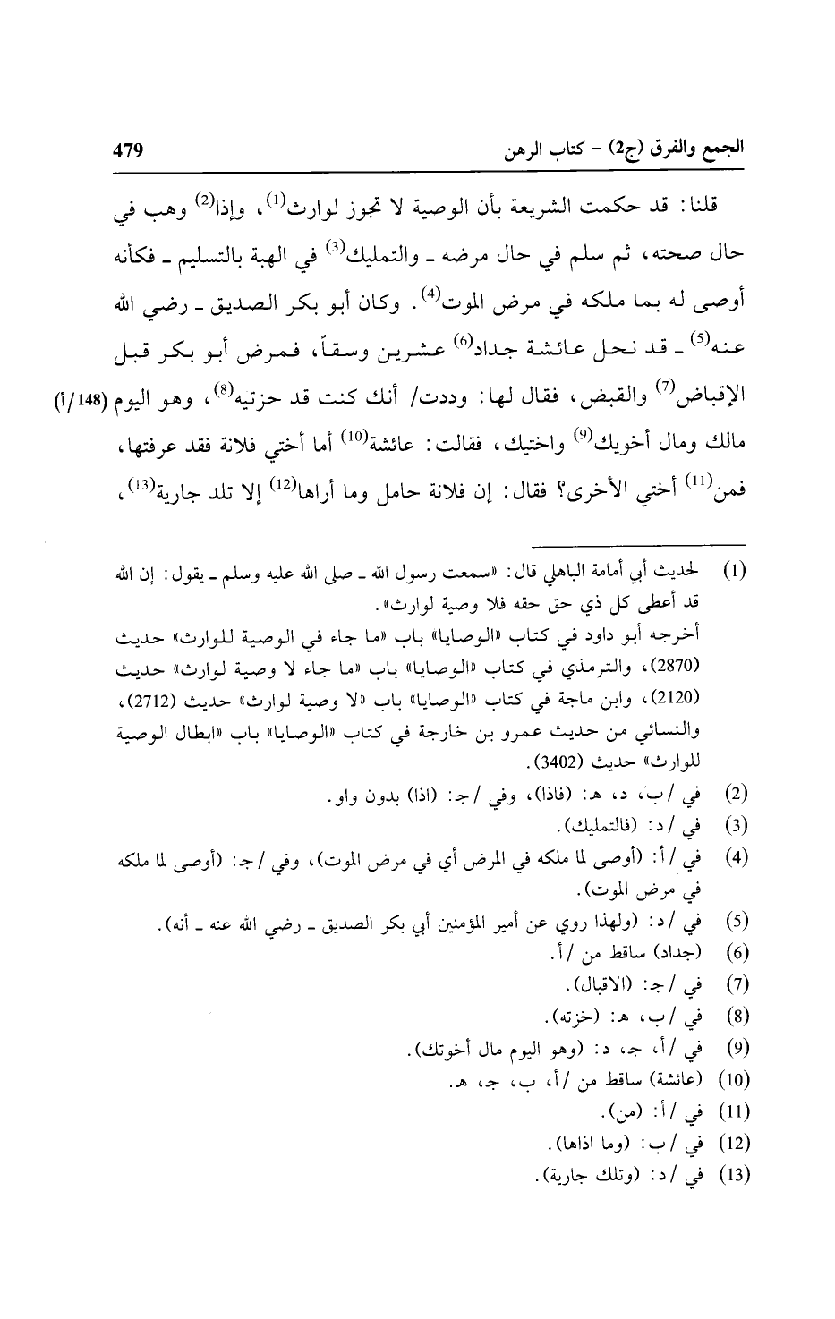 قلنا: قد حكمت الشريعة بأن الوصية لا تجوز لوارث، وإذا وهب في حال صحته، ثم سلم في حال مرضه - والتمليك في الهبة بالتسليم - فكأنه أوصى له بما ملكه في مرض الموت. وكان أبو بكر الصديق - رضي الله عنه - قد نحل عائشة جداد عشرين وسقًا، فمرض أبو بكر قبل الإقباض والقبض، فقال لها: وددت/ (١٤٨/ ب) أنك كنت قد حزتيه، وهو اليوم مالك ومال أخويك وأختيك، فقالت: عائشة أما أختي فلانة فقد عرفتها، فمن أختي الأخرى؟ فقال: إن فلانة حامل وما أراها إلا تلد جارية،
