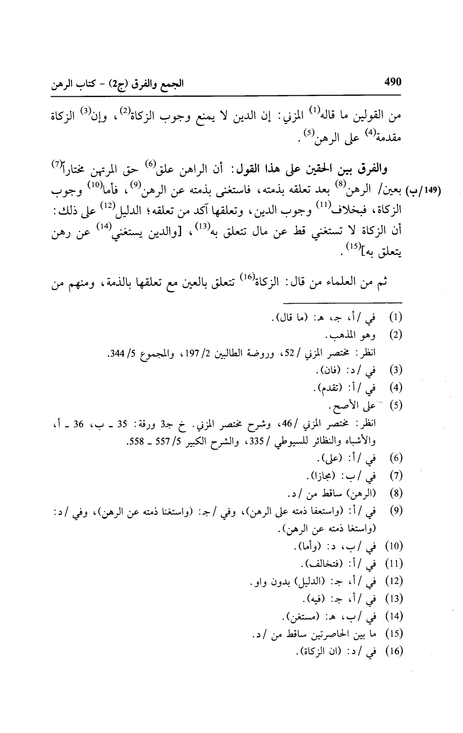 والفرق بين الحقين على هذا القول: أن الراهن علق حق المرتهن مختارًا بعين/ (١٤٩/ ب) الرهن بعد تعلقه بذمته، فاستغنى بذمته عن الرهن، فأما وجوب الزكاة، فبخلاف وجوب الدين، وتعلقها آكد من تعلقه؛ الدليل على ذلك: أن الزكاة لا تستغني قط عن مال تتعلق به، [والدين يستغني عن رهن يتعلق به].