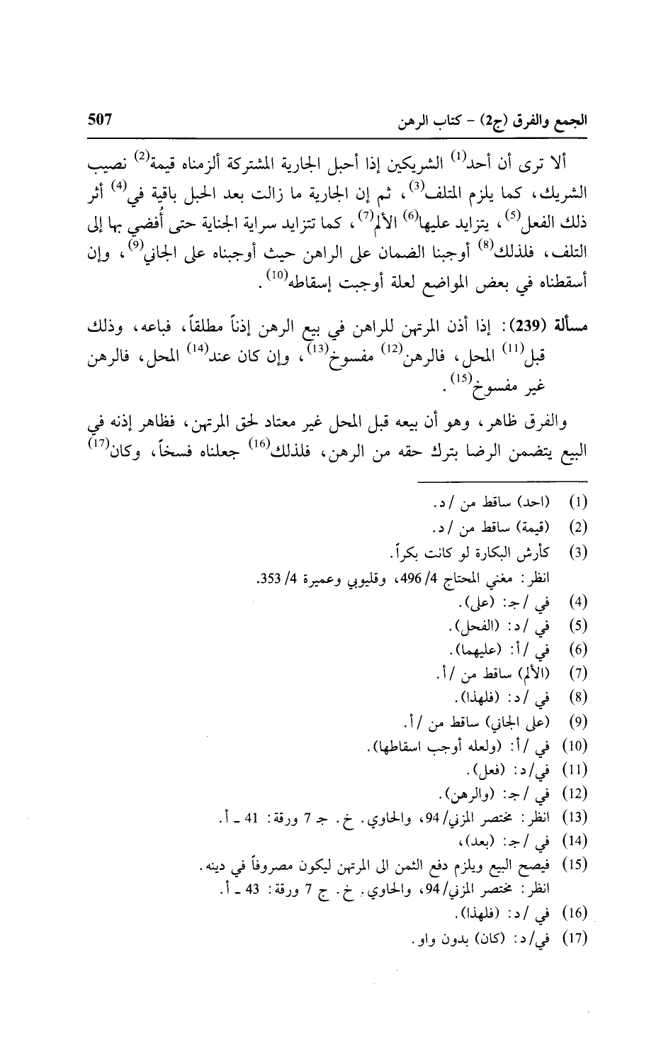 ألا ترى أن أحد الشريكين إذا أحبل الجارية المشتركة ألزمناه قيمة نصيب الشريك، كما يلزم المتلف، ثم إن الجارية ما زالت بعد الحبل باقية في أثر ذلك الفعل، يتزايد عليها الألم، كما تتزايد سراية الجناية حتى أفضي بها إلى التلف، فلذلك أوجبنا الضمان على الراهن حيث أوجبناه على الجاني، وإن أسقطناه في بعض المواضع لعلة أوجبت إسقاطه.