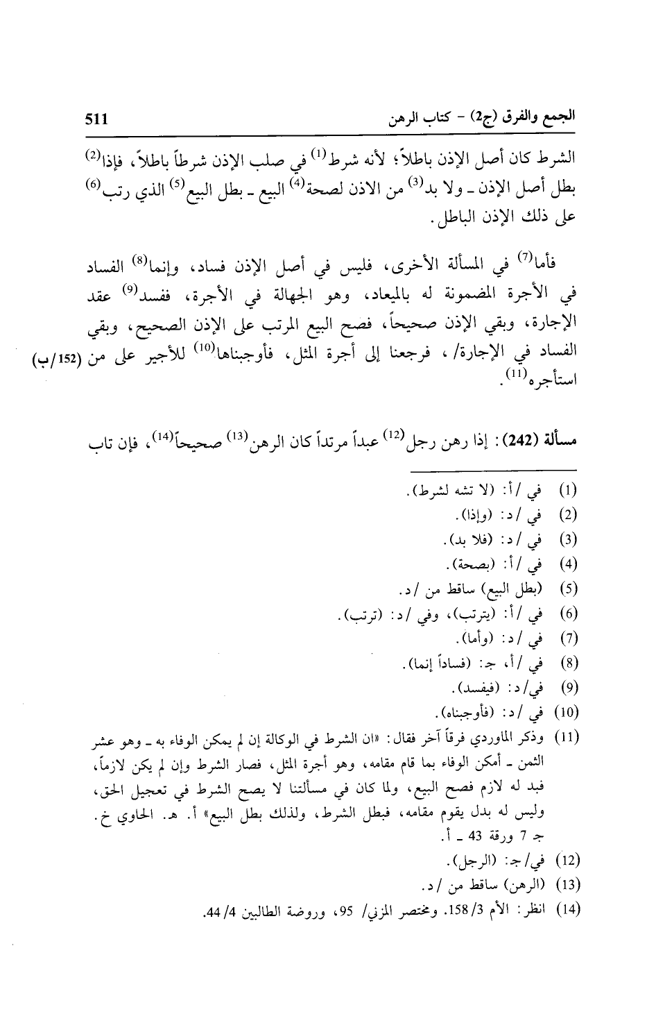 فأما في المسألة الأخرى، فليس في أصل الإذن فساد، وإنما الفساد في الأجرة المضمونة له بالميعاد، وهو الجهالة في الأجرة، ففسد عقل الإجارة، وبقي الإذن صحيحًا، فصح البيع المرتب على المرتب على الإذن الصحيح، وبقي الفساد في الإجارة / (١٥٢/ ب)، فرجعنا إلى أجرة المثل، فأوجبناها للأجير على من استأجره.