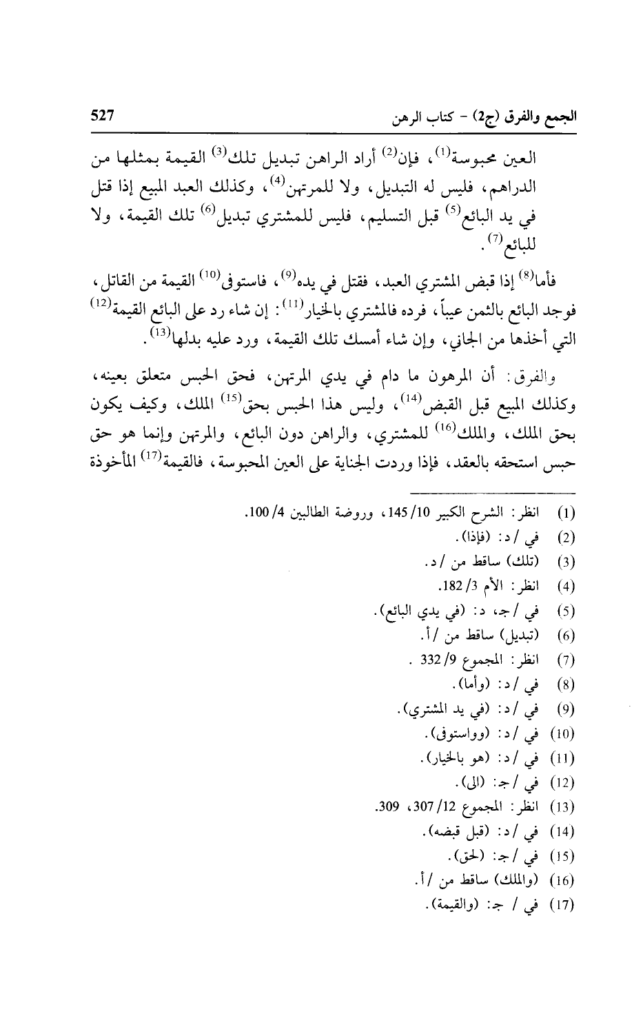 العين محبوسة، فإن أراد الراهن تبديل تلك القيمة بمثلها من الدراهم، فليس له التبديل، ولا للمرتهن، وكذلك العبد المبيع إذا قتل في يد البائع قبل التسليم، فليس للمشتري تبديل تلك القيمة، ولا للبائع.