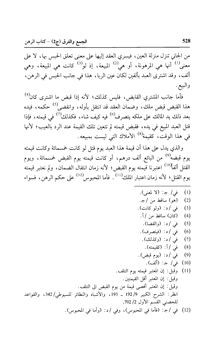 والذي يدل على هذا أن قيمة هذا العبد يوم قتل لو كانت خمسمائة وكانت قيمته يوم قبضه من البائع ألف درهم, أو كانت قيمته يوم القبض خمسمائة، ويوم القتل ألفا اعتبرنا قيمته يوم القبض, لأنه زمان انتقال الضمان، ولم نعتبر قيمته يوم القتل، لأنه زمان اعتبار الملك. فأما المحبوس على حكم الرهن, فسواء