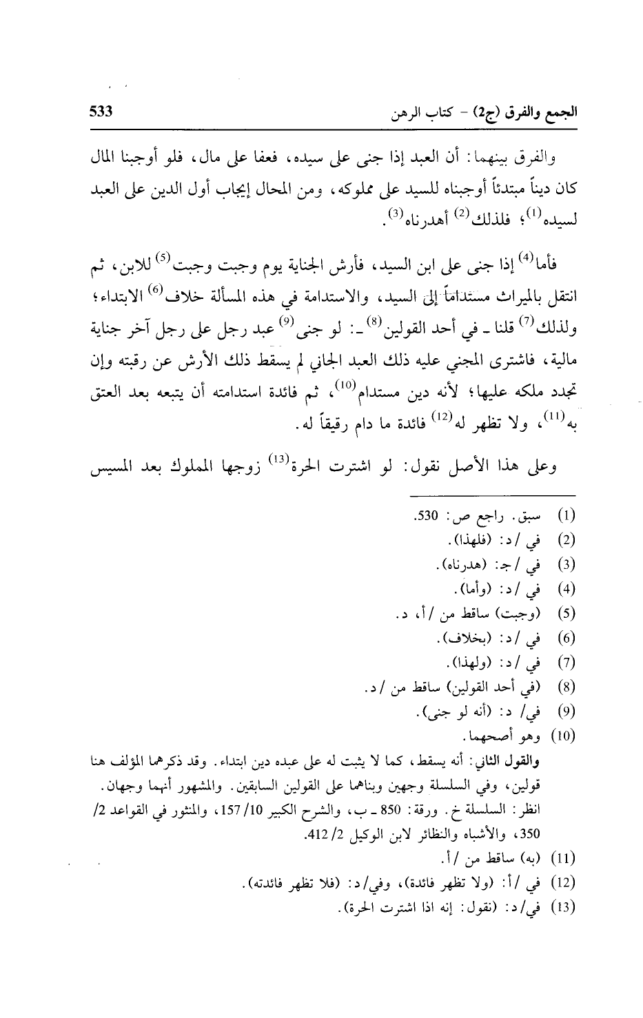 في هذه المسألة خلاف الابتداء؛ ولذلك قلنا - في أحد القولين -: لو جني عبد رجل على رجل آخر جناية مالية, فاشترى المجني عليه ذلك العبد الجاني لم يسقط لك الأرش عن رقبته وإن تجدد ملكه عليها؛ لأنه دين مستدام, ثم فائدة استدامته أن يتبعه بعد العتق به, ولا تظهرله فائدة مادام رقيقا له.