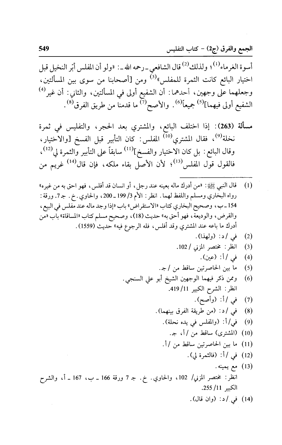 أسوة الغرماء؛ ولذلك قال الشافعي - رحمه الله -: "ولو أن المفلس أبر النخيل قبل اختيار البائع كانت الثمرة للمفلس" ومن [أصحابنا من سوى بين المسألتين, وجعلهما على وجهين, أحدهما: أن الشفيع أولى في المسألتين, والثاني: أن غير الشفيع أولى فيهما] جميعا. والأصح ما قدمنا من طريق الفرق.