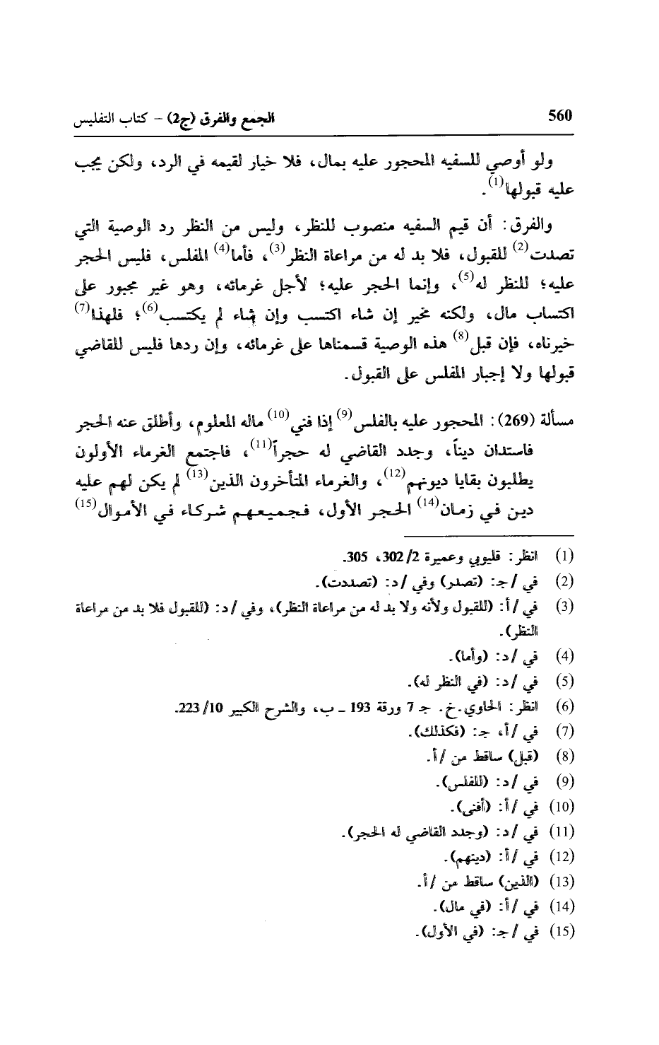 والفرق: أن قيم السفيه منصوب النظر, وليس من النظر رد الوصية التي تصدت للقبول, فلابد له من مراعاة النظر, فأما المفلس, فليس الحجر عليه؛ للنظر له, وإنما الحجر عليه؛ لأجل غرائمه, وهو غير مجبور على اكتساب مال, ولكنه مخير إن شاء اكتسب وإن شاء لم يكتسب؛ فلهذا خيرناه, فإن قبل هذه الوصية قسمناها على غرمائه, وإنما ردها فليس للقاضي قبولها ولا إجبار المفلس على القبول.