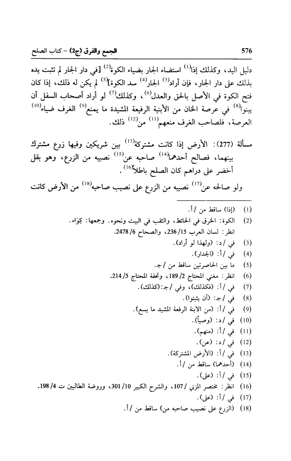 دليل اليد, وكذلك إذا استضاء الجار بضياء الكوة [في دار الجار لم تثبت يده بذلك على دار الجار, فإن أراد الجار سد الكوة] لم يكن له ذلك, إذا كان فتح الكوة في الأصل بالحق والعدل, وكذلك لو أراد أصحاب السفل أن بينوا في عرصة الخان من الأبنية الرفيعة المشيدة ما ينفع الغرف ضياء العرصة, فلصاحب الغرف منعهم من ذلك.