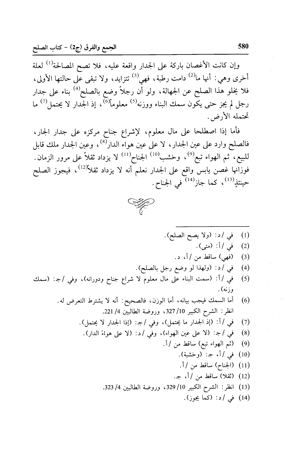 فأما إذا اصطلحا على مال معلوم, لإشراع جناح مركزه على جدار الجار, فالصلح وارد على عين الجدار, لا على عين هواء الدار, وعين الجدار ملك قابل للبيع، ثم الهواء تبع, وخشب الجناح لا يزداد ثقلاً على مرور الزمان. فوزانها غصن يابس واقع على الجدار نعلم أنه لا يزداد ثقلاً, فيجوز الصلح حينئذ, كما جاز في الجناح.