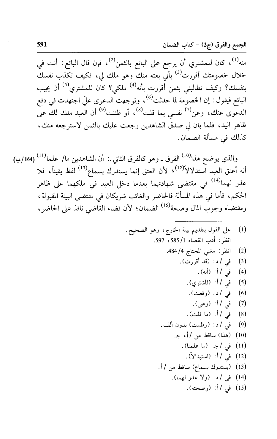 والذي يوضح هذا الفرق - وهو كالفرق الثاني: أن الشاهدين ما علما أنه أعتق العبد استدلالًا؛ لأن العتق إنما يستدرك بسماع لفظ يقينًا, فلا عذر لهما في مقتضى شهادتهما بعدما دخل العبد في ملكهما على ظاهر الحكم, فأما في هذا المسألة فالحاضر والغائب شريكان في مقتضى البينة المقبولة, ومقتضاه وجوب المال وصحة الضمان؛ لأن قضاء القاضي نافذ على الحاضر,