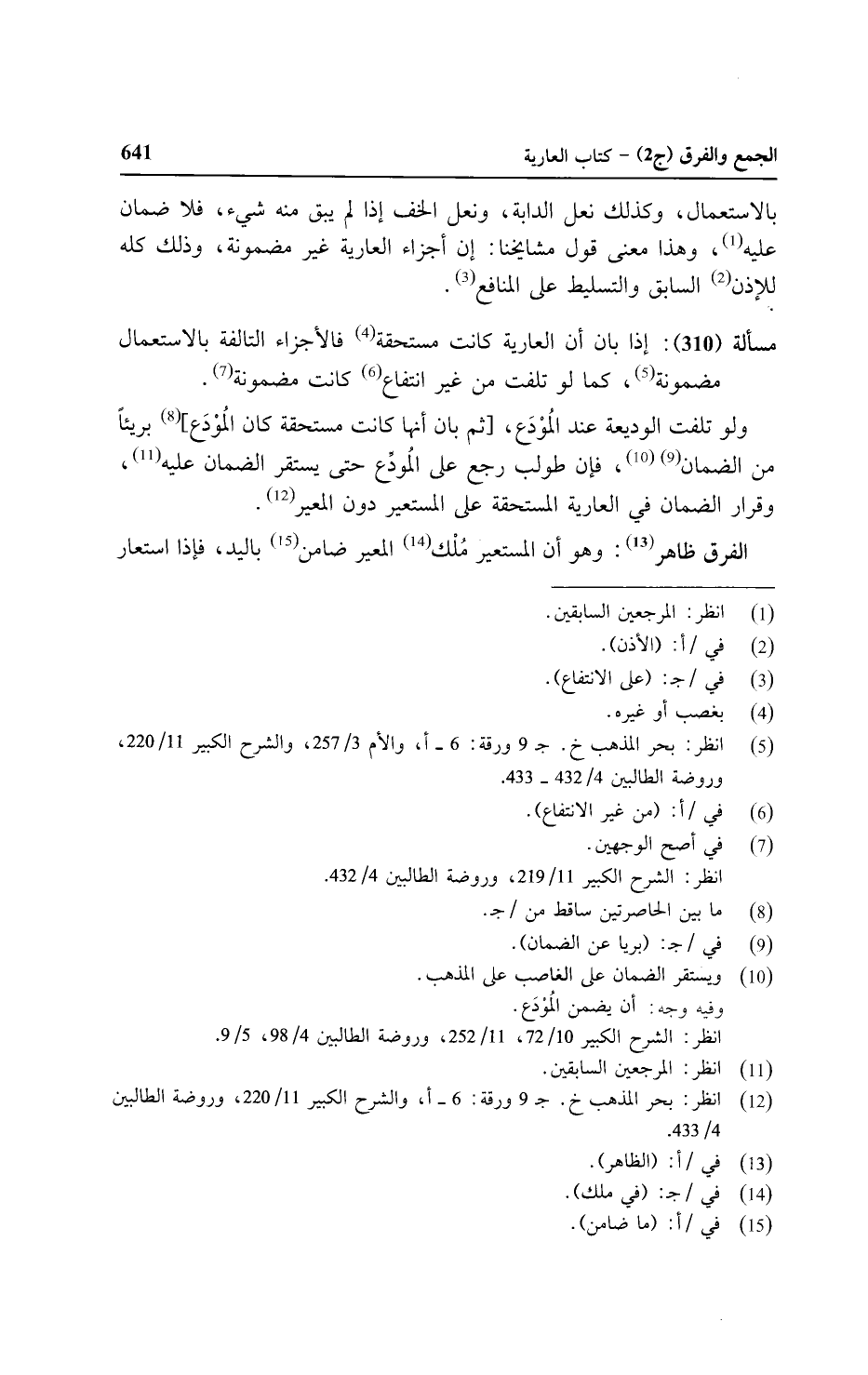مسألة (٣١٠): إذا بان أن العارية كانت مستحقة فالأجزاء التالفة بالاستعمال مضمونة، كما لو تلفت من غير انتفاع كانت مضمونة.