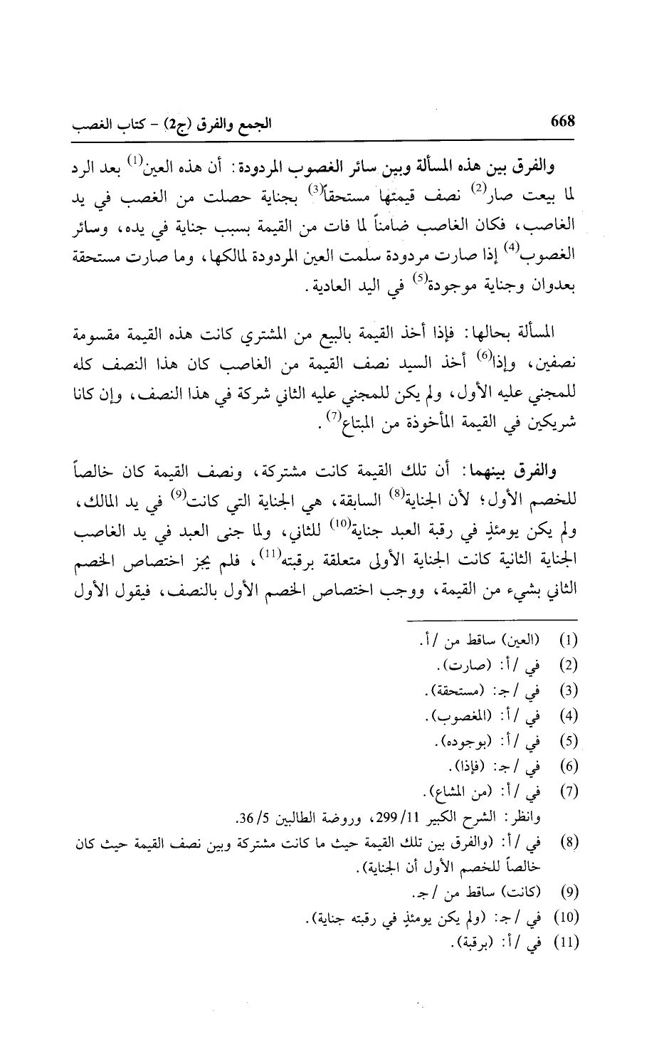 والفرق بين هذه المسألة وبين سائر الغصوب المردودة: أن هذه العين بعد الرد لما بيعت صار نصف قيمتها مستحقًا بجناية حصلت من الغصب في يد الغاصب، فكان الغاصب ضامنًا لما فات من القيمة بسبب جناية في يده، وسائر الغصوب إذا صارت مردودة سلمت العين المردودة لمالكها، وما صارت مستحقة بعدوان وجناية موجودة في اليد العادية.