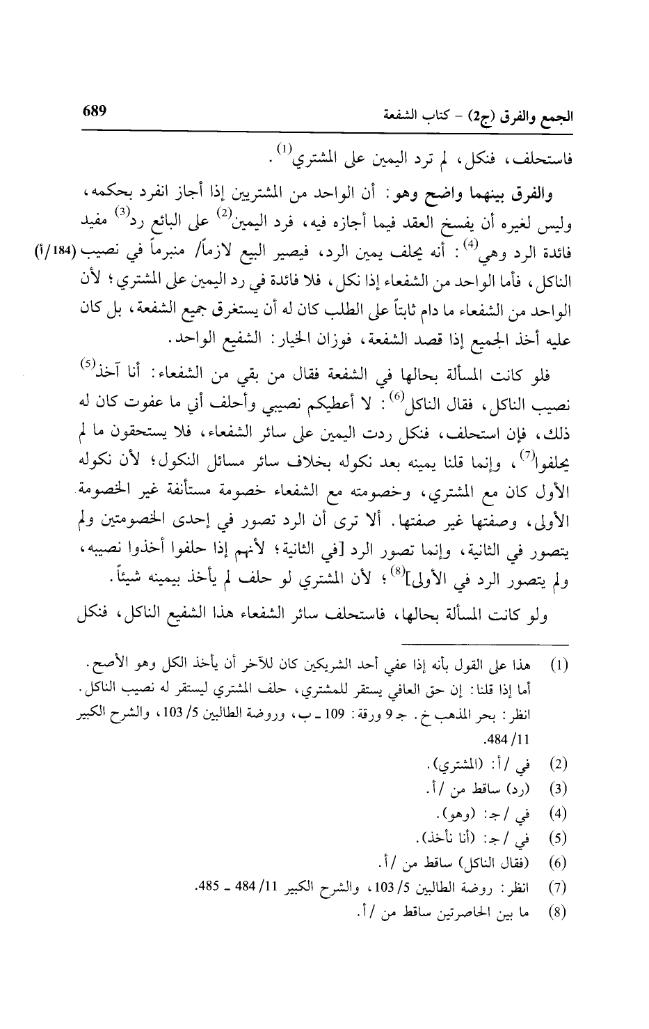 والفرق بينهما واضح وهو: أن الواحد من المشتريين إذا أجاز انفراد بحمكه وليس لغيره أن يفسخ العقد فيما أجازه فيه، فرد اليمين على البائع رد مفيد فائدة الرد هي: أنه يحلف يمين الرد، فيصير البيع لازمًا/ (١٨٤ - ب) منبرمًا في نصيب الناكل، فأما الواحد من الشفعاء إذا نكل، فلا فائدة في رد اليمين على المشتري؛ لأن الواحد من الشفعاء ما دام ثابتًا على الطلب كان له أن يستغرق جميع الشفعة، بل كان عليه أخذ الجميع إذا قصد الشفعة، فوزان الخيار: الشفيع الواحد.