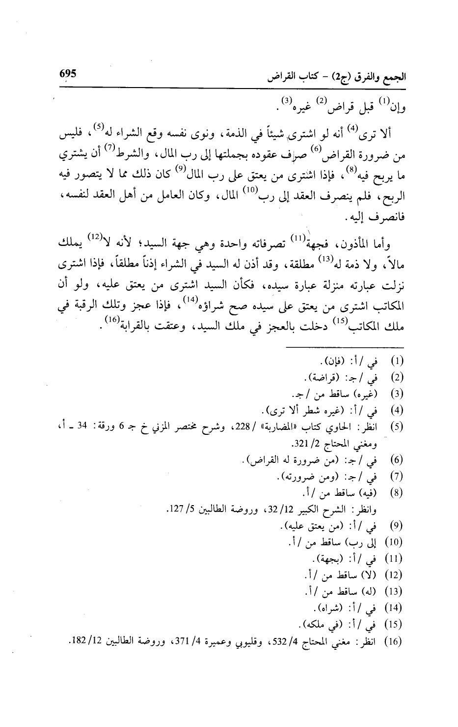 وأما المأذون، فجهة تصرفاته واحدة وهي جهة السيد؛ لأنه لا يملك مالًا، ولا ذمة له مطلقة، وقد أذن له السيد في الشراء إذنًا مطلقًا، فإذا اشترى نزلت عبارته منزلة عبارة سيده، فكأن السيد اشترى من يعتق عليه، ولو أن المكاتب اشترى من يعتق على سيده صح شراؤه، فإذا عجز وتلك الرقبة في ملك المكاتب دخلت بالعجز في ملك السيد، وعتقت بالقرابة.