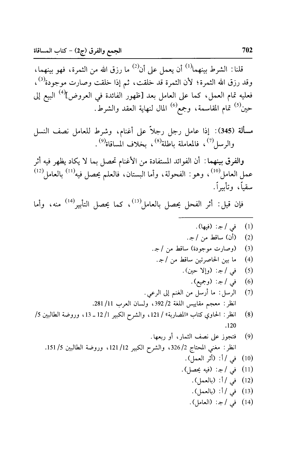 مسألة (٣٤٥): إذا عامل رجل رجلا على أغنام, وشرط للعامل نصف النسل والرسل, فالمعاملة