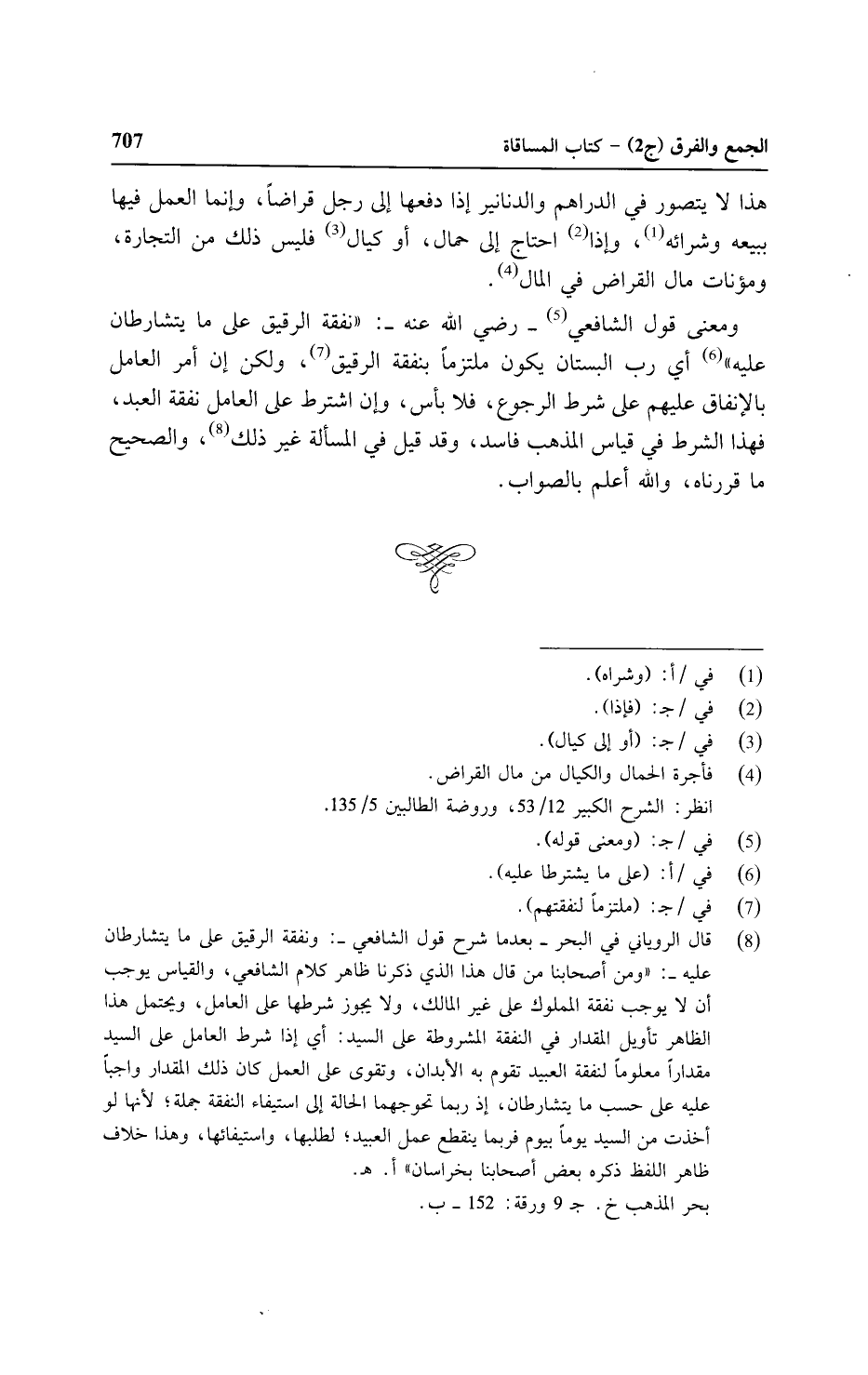 ومعنى قول الشافعي - رضي الله عنه -: " نفقة الرقيق على ما يتشارطان عليه" أي رب البستان يكون ملتزما بنفقة الرقيق, ولكن إن أمر العامل بالإنفاق عليهم على شرط الرجوع, فلا بأس, وإن اشترط على العامل نفقة العبد, فهذا الشرط في قياس المذهب فاسد, وقد قيل في المسألة غير ذلك, والصحيح ما قررناه, والله أعلم بالصواب.