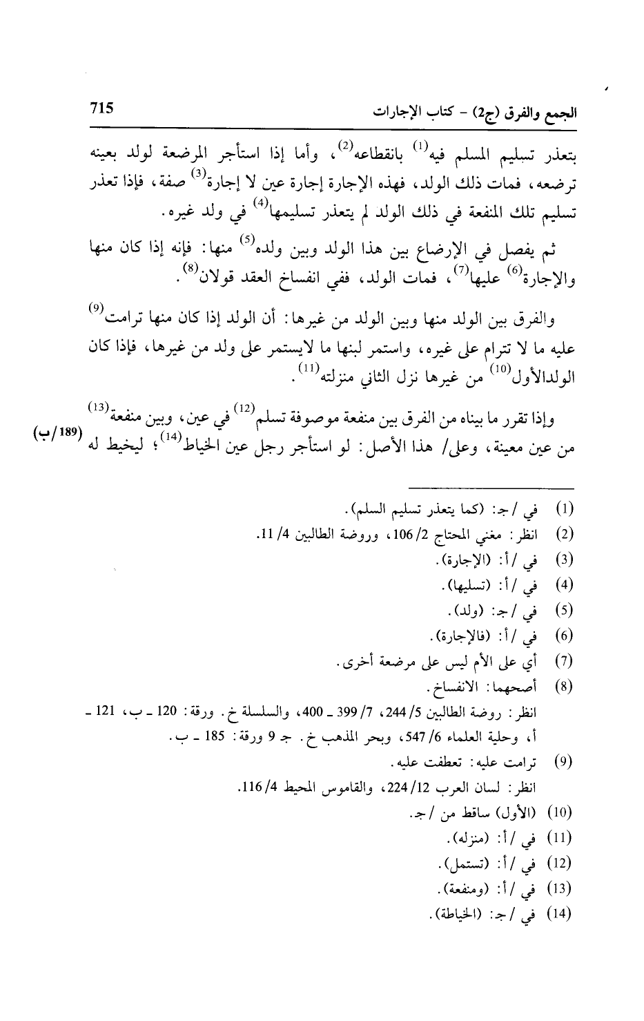 وإذا تقرر ما بيناه من الفرق بين منفعة موصوفة تسلم في عين, وبين منفعة من عين معينة, وعلى هذا الأصل: لو استأجر رجل عين الخياط؛ ليخيط له