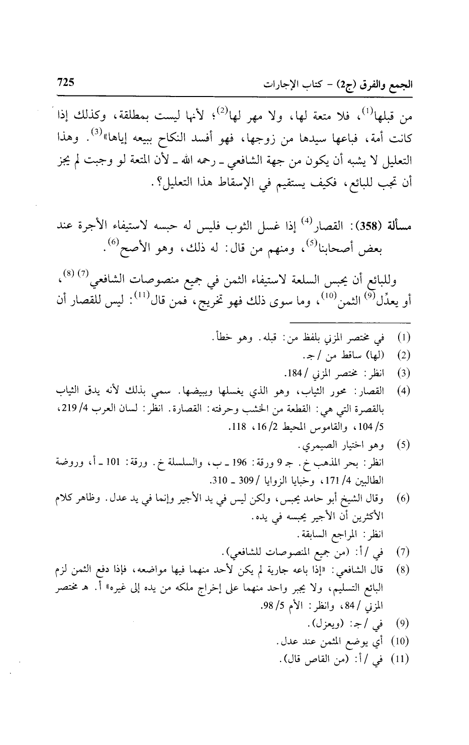 من قبلها, فلا متعة لها, ولا مهر لها؛ لأنها ليست بمطلقة, وكذلك إذا كانت أمة, فباعها سيدها من زوجها, فهو أفسد النكاح ببيعه إياها". وهذا التعليل لا يشبه أن يكون من جهة الشافعي - رحمه الله - لآن المتعة لو وجبت لم يجز أن تجب للبائع, فكيف يستقيم في الإسقاط هذا التعليل؟.
