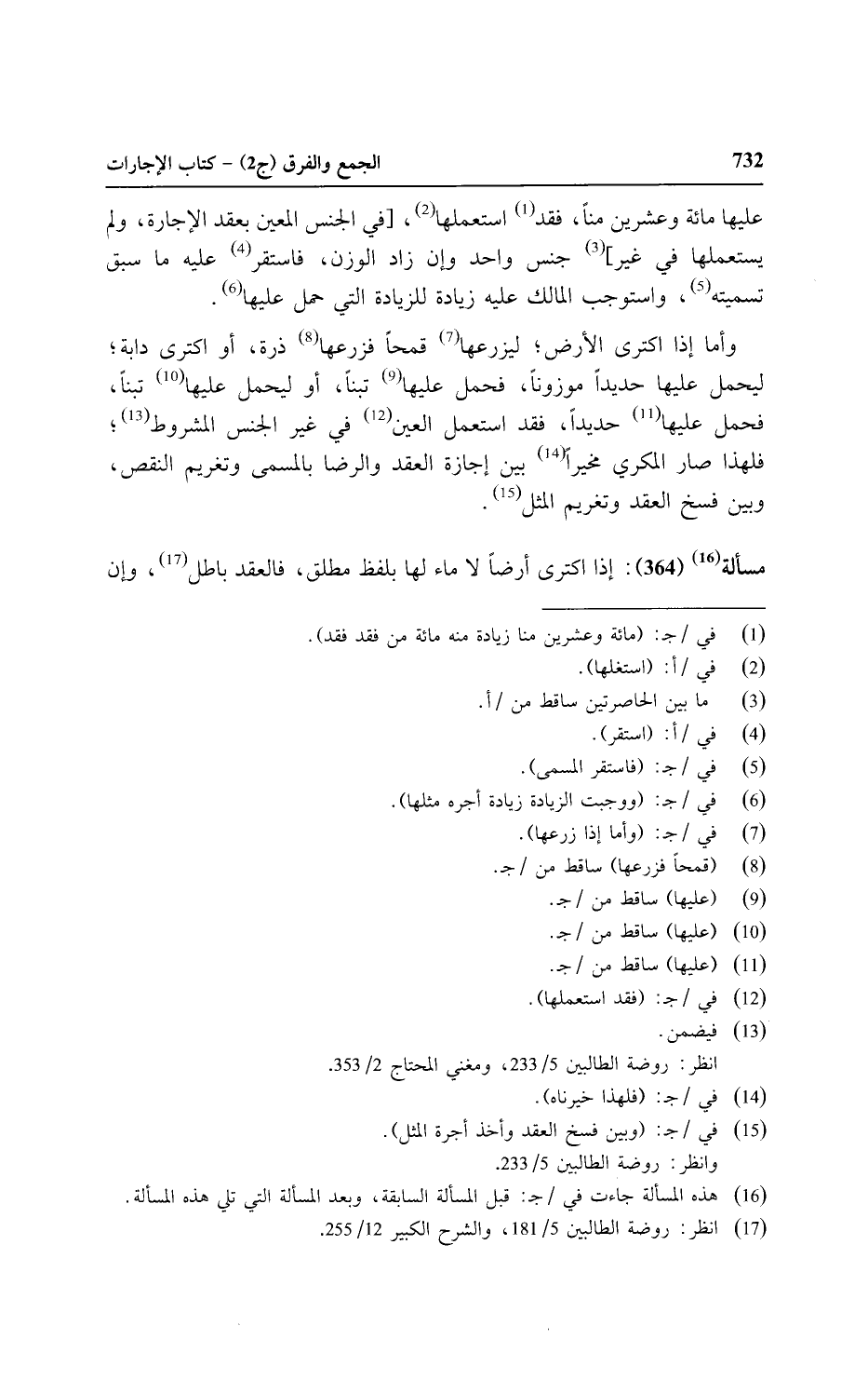 وأما إذا اكترى الأرض؛ قمحآ فزرعها ذرة, أو اكترى دابة؛ ليحمل عليها حديدا موزونا, فحمل عليها تبنآ, أو ليحمل عليها تبنآ, فحمل عليها حديدا, فقد استعمل العين في غير الجنس المشروط؛ فلهذا صار المكري مخيرآ بين إجازة العقد والرضا بالمسمى وتغريم النقص, وبين فسخ العقد وتغريم المثل.