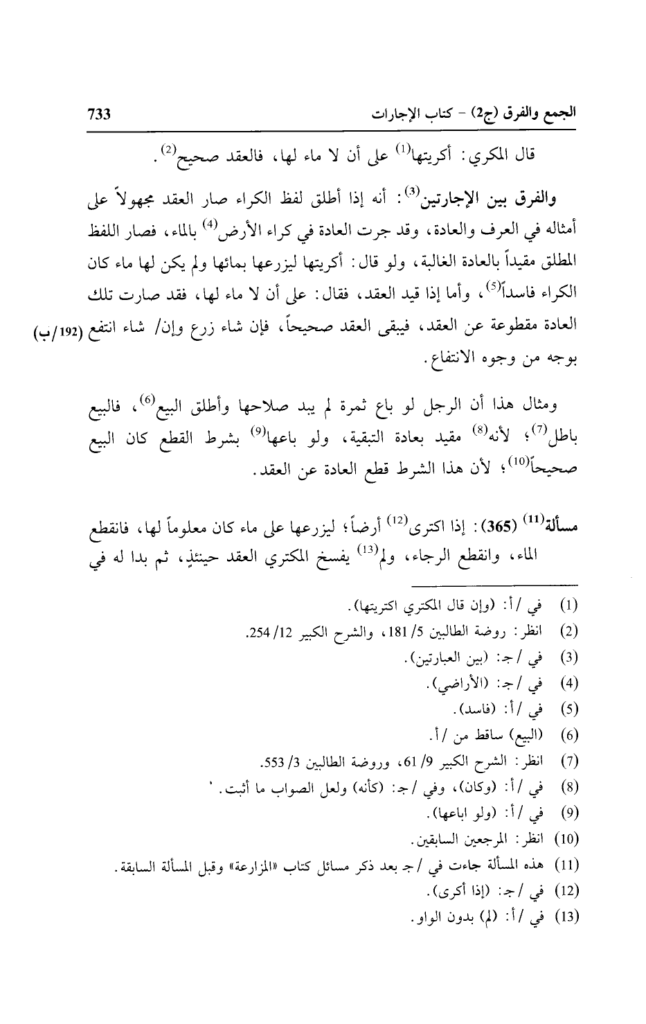 والفرق بين الإجارتين: أنه إذا أطلق لفظ الكراء صار العقد مجهولا على أمثاله في العرف والعادة في كراء الأرض بالماء, فصار اللفظ المطلق مقيدا بالعادة الغالبة, ولو قال: أكريتها ليزرعها بمائها ولم يكن لها ماء كان الكراء فاسدا, وأما إذا قيد العقد, فقال: على أن لا ماء لها, فقد صارت تلك العادة مقطوعة عن العقد, فيبقى العقد صحيحا, فإن شاء زرع وإن شاء انتفع بوجه من وجوه الانتفاع.