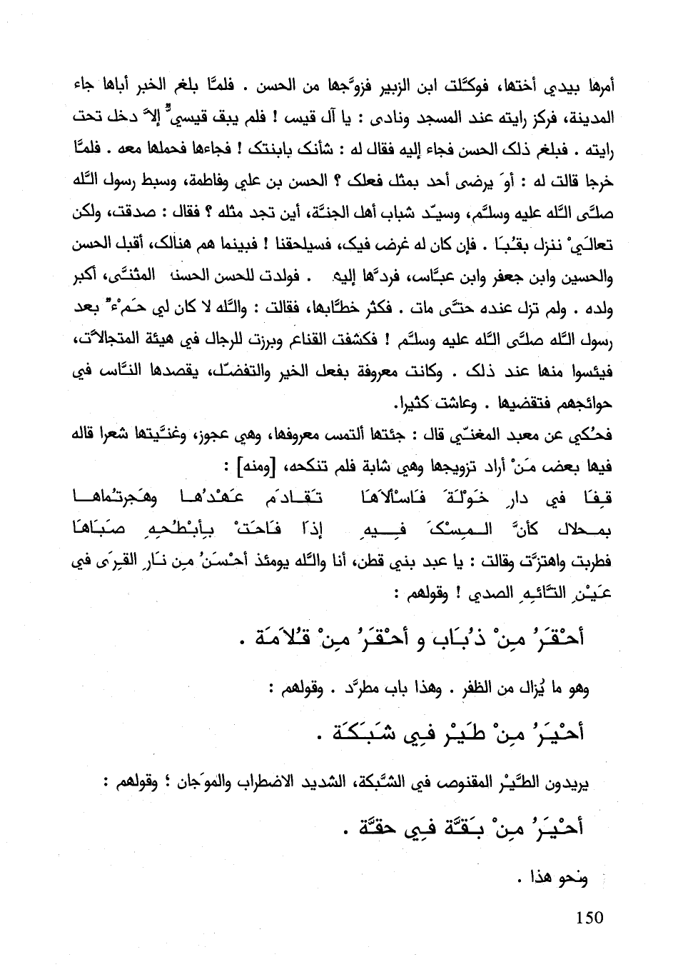 فحكي عن معبد المغني قال: جئتها ألتمس معروفا، وهي عجوز، وغنيتها شعراً قاله فيها بعض من أراد تزويجها وهي شابة فلم تنكحه ومنه: