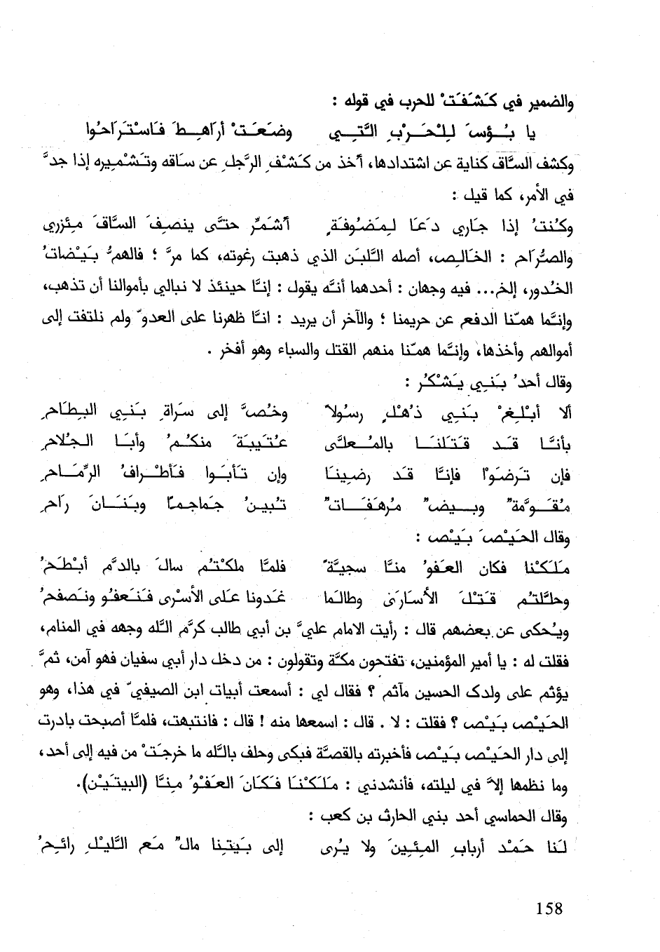 والصارح: الخالص أصله اللبن الذي ذهبت رغوته، كما مر؛ فالهم بيضات الخدور الخ. . فيه وجهان: أحدهما إنّه يقول: أما حينئذ لا نبالي بأموالنا أن تذهب، وإنّما همنا الدفع عن حريمنا؛ والآخر: إنَّ يريد: أنا ظهرنا على العدو ولم نلتفت إلى أموالهم وأخذها، وإنما همنا منهم القتل والسباء وهو أفخر.