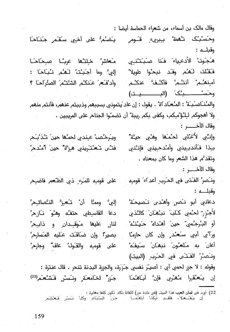 وقال مالك بن أسماء، من شعراء الحماسة أيضاً: