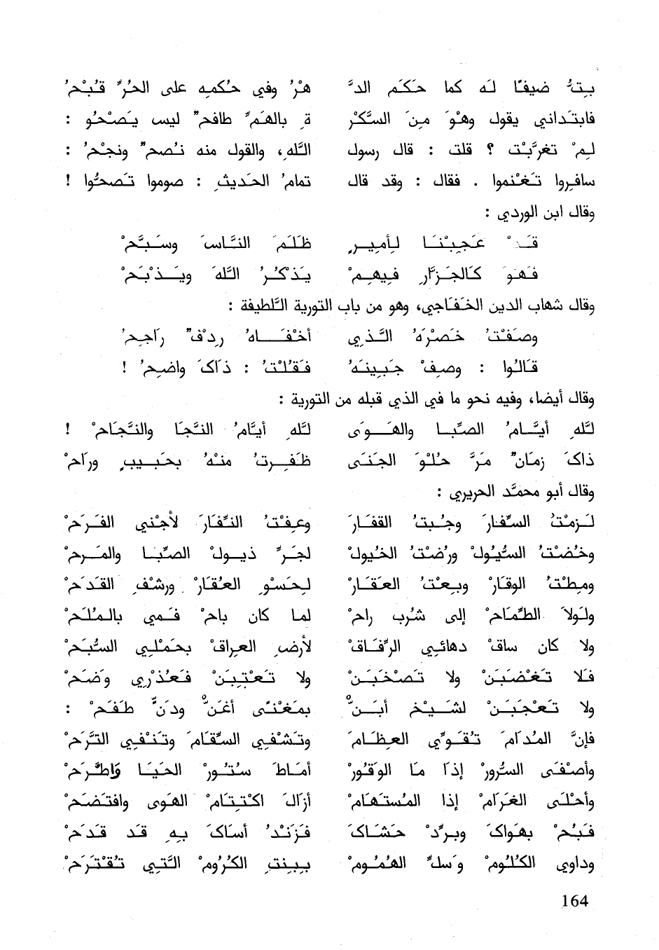 وقال أيضاً وفيه نحو ما في الذي قبله من التورية: