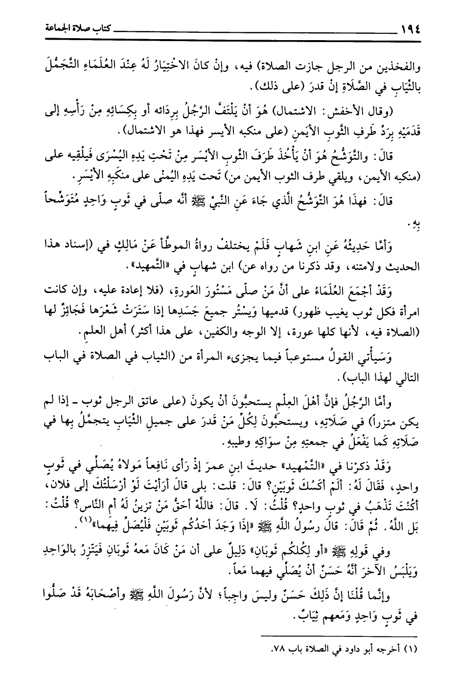 قَالَ فَهَذَا هُوَ التَّوَشُّحُ الَّذِي جَاءَ عَنِ النَّبِيِّ صَلَّى اللَّهُ عَلَيْهِ وَسَلَّمَ أَنَّهُ صَلَّى فِي ثَوْبٍ وَاحِدٍ مُتَوَشِّحًا بِهِ