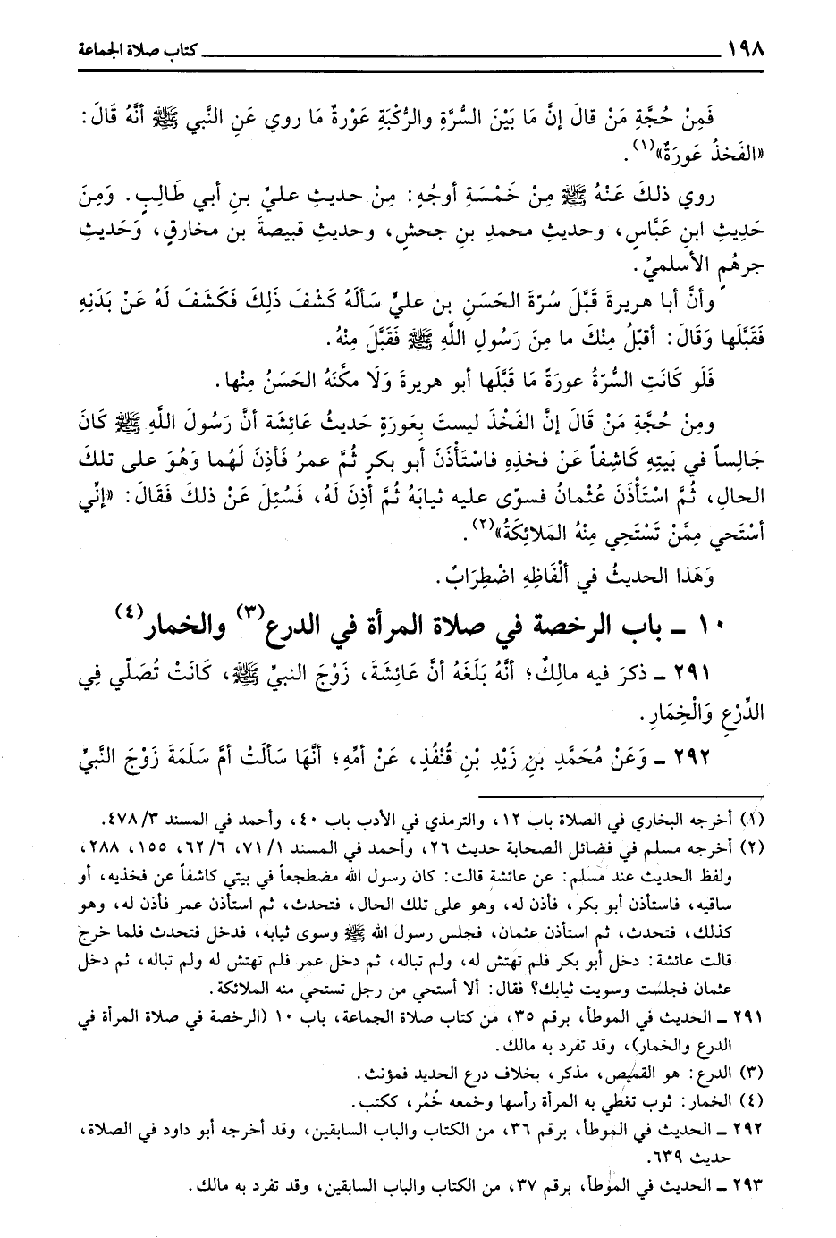 291 - ذَكَرَ فِيهِ مَالِكٌ أَنَّهُ بَلَغَهُ أَنَّ عَائِشَةَ زَوْجَ النَّبِيِّ صَلَّى اللَّهُ عَلَيْهِ وَسَلَّمَ كَانَتْ تُصَلِّي فِي الدِّرْعِ وَالْخِمَارِ