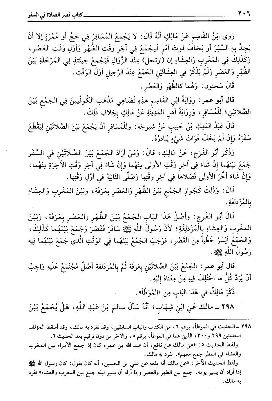 298 - مَالِكٌ عن بن شِهَابٍ أَنَّهُ سَأَلَ سَالِمَ بْنَ عَبْدِ اللَّهِ هَلْ يُجْمَعُ بَيْنَ