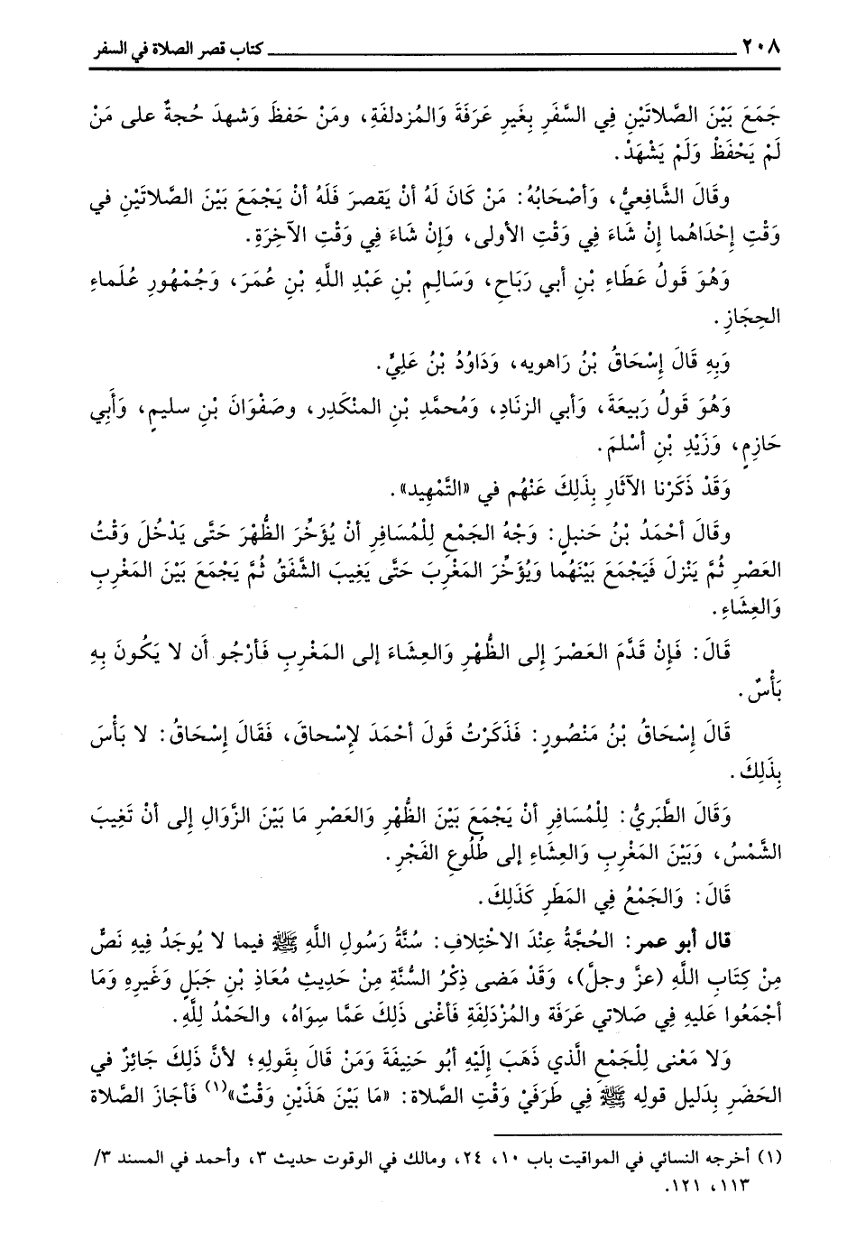 جَمَعَ بَيْنَ الصَّلَاتَيْنِ فِي السَّفَرِ بِغَيْرِ عَرَفَةَ وَالْمُزْدَلِفَةِ وَمَنْ حَفِظَ وَشَهِدَ حُجَّةً عَلَى مَنْ لَمْ يَحْفَظْ وَلَمْ يَشْهَدْ