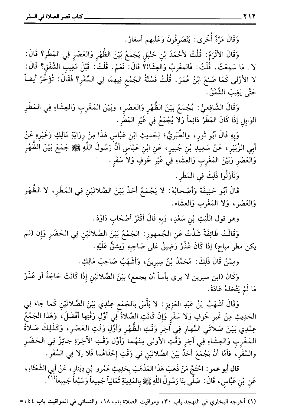 وكان (بن سِيرِينَ لَا يَرَى بَأْسًا أَنْ يَجْمَعَ) بَيْنَ الصَّلَاتَيْنِ إِذَا كَانَتْ حَاجَةٌ أَوْ عُذْرٌ مَا لَمْ يَتَّخِذْهُ عَادَةً