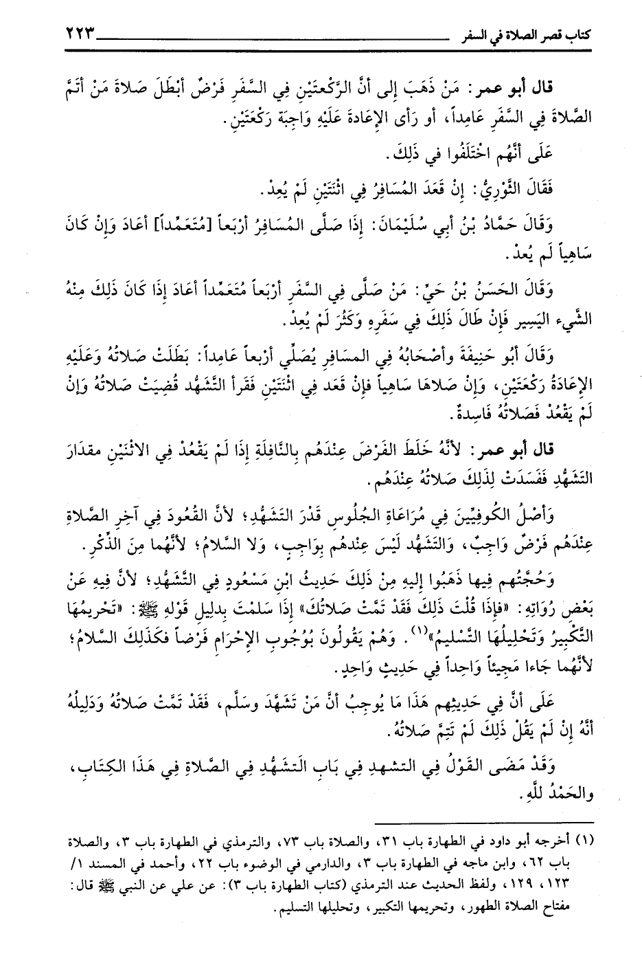 قَالَ أَبُو عُمَرَ مَنْ ذَهَبَ إِلَى أَنَّ الرَّكْعَتَيْنِ فِي السَّفَرِ فَرْضٌ أَبْطَلَ صَلَاةَ مَنْ أَتَمَّ الصَّلَاةَ فِي السَّفَرِ عَامِدًا أَوْ رَأَى الْإِعَادَةَ عَلَيْهِ وَاجِبَةً رَكْعَتَيْنِ