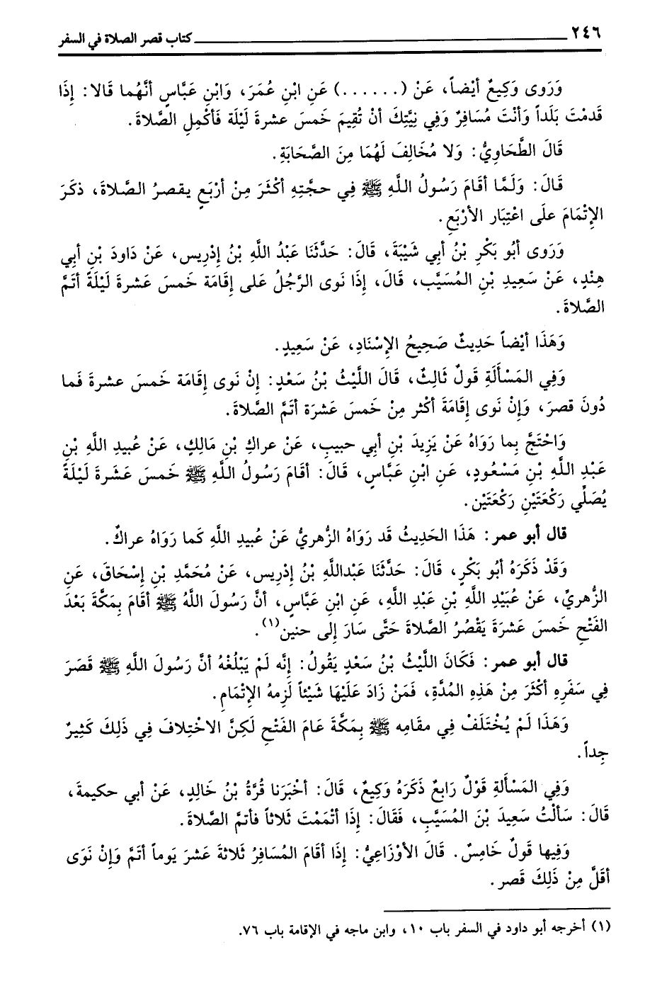 قَالَ أَبُو عُمَرَ فَكَانَ اللَّيْثُ بْنُ سَعْدٍ يَقُولُ أَنَّهُ لَمْ يَبْلُغْهُ أَنَّ رَسُولَ اللَّهِ صَلَّى اللَّهُ عَلَيْهِ وَسَلَّمَ قَصَرَ فِي سَفَرِهِ أَكْثَرَ مِنْ هَذِهِ الْمُدَّةِ فَمَنْ زَادَ عَلَيْهَا شَيْئًا لَزِمَهُ الْإِتْمَامُ